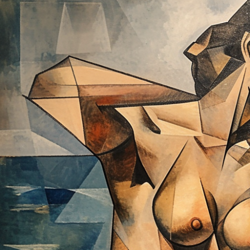 A fit woman in a bikini at the beach as painted by Picasso in his cubism style --v 6.0