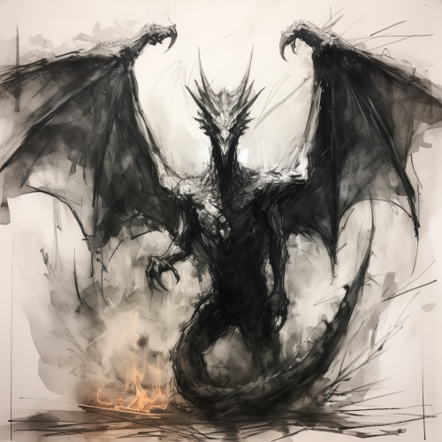 a dragon from game of thrones, dramatic perspective, abstract, loose charcoal sketch, style of pablo picasso, smudged, outlines lines