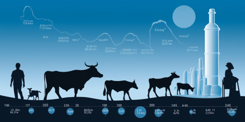 vector art, no photography, no infographic. Art for: Household Average Milk production Livestock feeding consistently associated with higher milk production at household level (this effect is consistent both in the dry and non-dry season) Improved milk production and maintenance of milking livestock at the household level; 1 224 households (Groups 1 and 2) produced 0.2 litre of milk more per day compared to the control group, representing a 25 percent increase in milk production. Household milk yield: 78% increase in milk production (0.63 more litres of milk per day) compared control arm . only with 6 colors --ar 6:3
