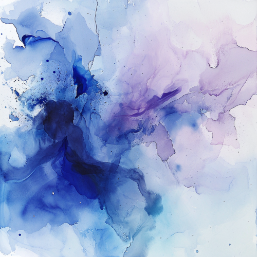 an abstract watercolor and color splash in electric blue, baby blue, dusty lavender --v 6.0