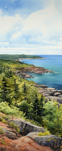 watercolor painting of Acadia National park panoramic view, --ar 5:12 --s 50