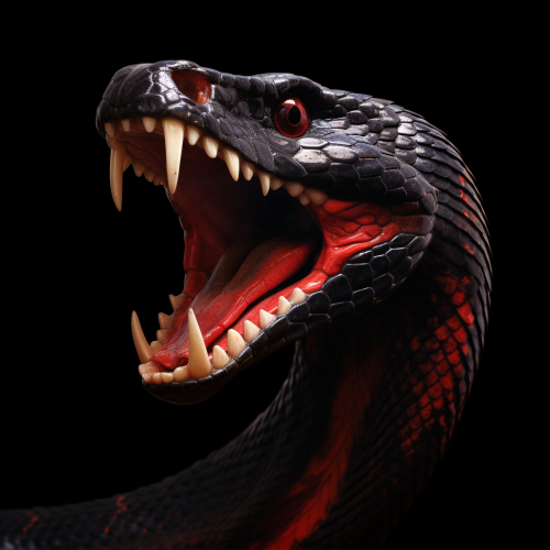 cobra head with open mouth, liner style, white line, black background, realistic