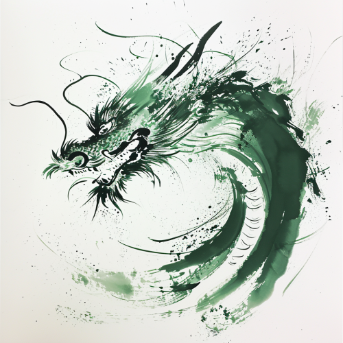 Chinese dragon painted by Wu Guanzhong, very cute dragon, close-up head, ink artistic conception, abstract simple lines, illustration, Picasso,green color, white background, 18k--ar --v 6.0