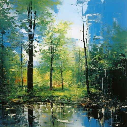 , gerhard richter, oil canvas, landscape dresden, blue sky, woods--ar16:6--v5.3