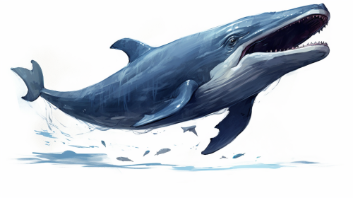 Giant Blue Whale friend eating, in the style of digital painting, concept character art, biblical storybook illustrations, himalayan art, anime-inspired, concept art, painterly style, white background --ar 16:9