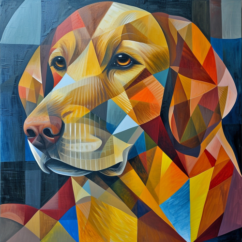 golden retriever as painted by picasso in a very abstract cubism style --v 6.0