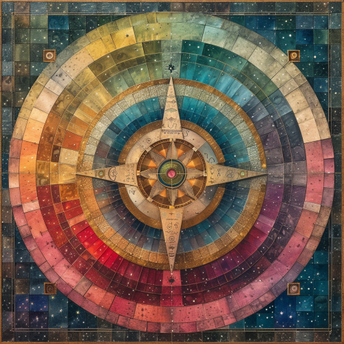 Painting of Astral, sharp, multi-colored, detailed image of a compass, Background contains an energy pyramid, Spirituality, Dharma art, Mystical, Conceptual art of dharmachakra, –ar 1600:2400 --v 6.0 --s 250