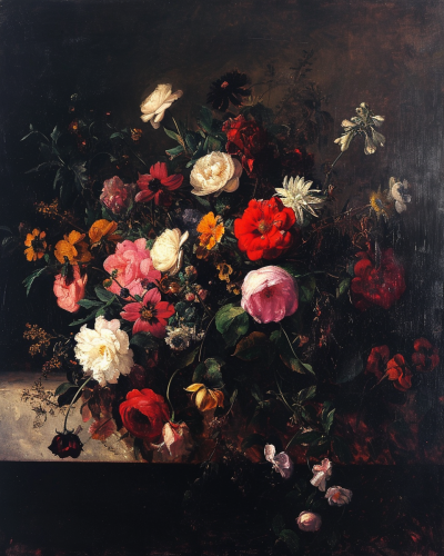 bouquet of Flowers, painting, henry fantin-lafour, dark and moody, theme is the death of death --ar 4:5 --v 6.0