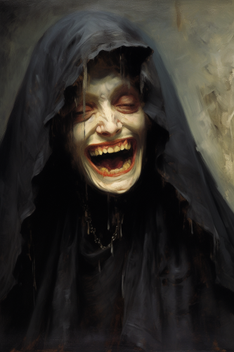 face portrait od an old evil smiling mythological hooded woman, drama, academic realism, bouguereau, ilya repin, tadema, --ar 2:3
