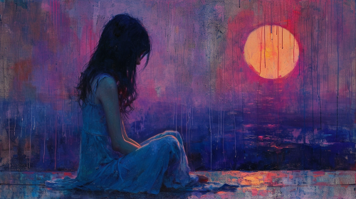 digital painting abstract sunset. 2 color tone. --ar 3:2