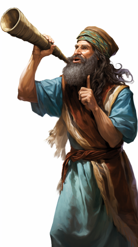 Hebrew Warrior blowing Shofar, in the style of digital painting, storybook illustrations, himalayan art, raphael, jeff kinney, white background --ar 9:16