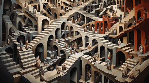 Painting in style of MC Escher and Alex Ross --ar 16:9