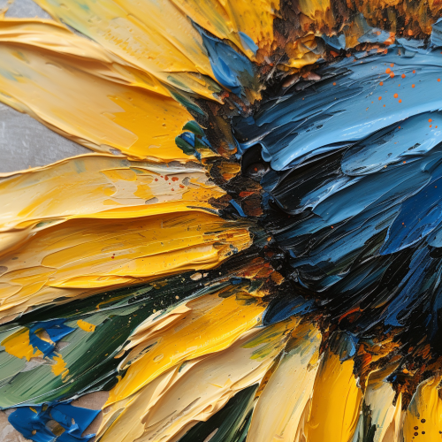 Abstract Style, Sunflower, Bill Alexander Style Oil Painting, Heavy Brush Teasing, Details Macro Close-up --ar 1:1