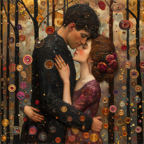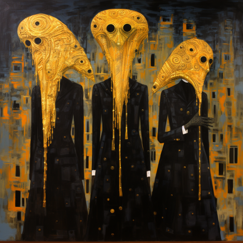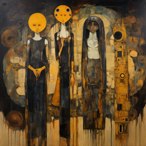 Allegorical mister darkness figures. Painting style Gustav Klimt. Oil paints, strokes, smears