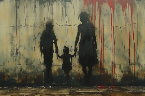 banksy painting . Family. Street art. Stencil and spray paint. Graffiti. --v 6.0 --ar 3:2 --s 750