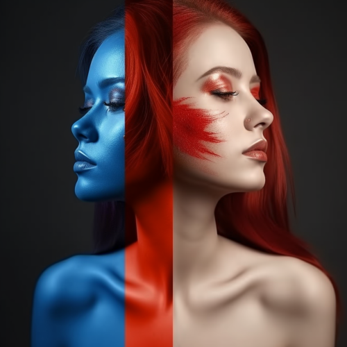 beautiful woman hiperrealizm red and blue --v 5.0 --s 50