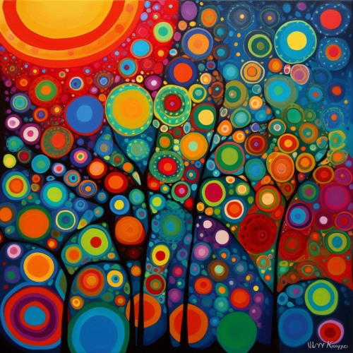 bright, pretty colors on a canvas by Faiza Maghni art by Yayoi Kusama art --v 5.0 --s 250