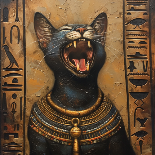 cat mouth open painting, with whiskers, plaine, less detials, egyptian --v 6.0