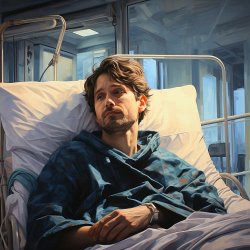 a painting of a man covered with a blanket in cozy hospital room, joyful atmosphere::10 , a photorealistic painting by Sam Spratt, cgsociety, analytical art, behance hd, 2d game art, academic art --s 250