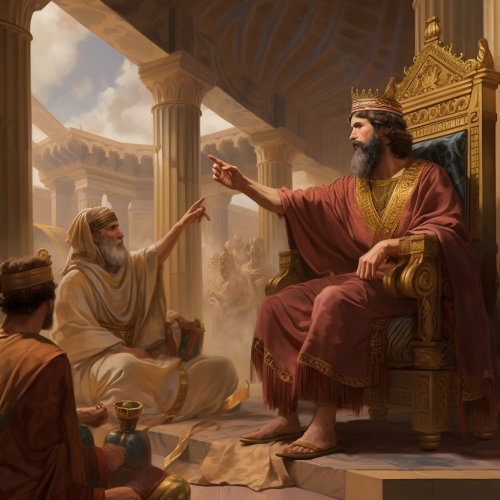 King David being reprimanded by the prophet Nathan in his temple in the Bible