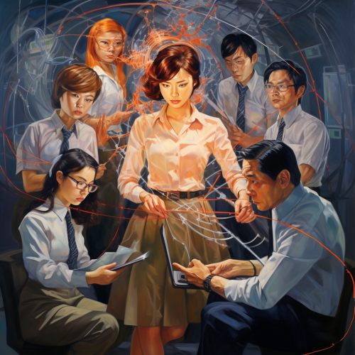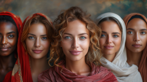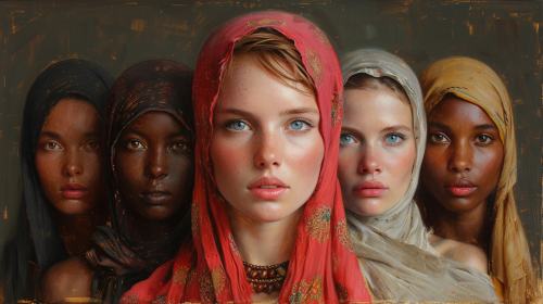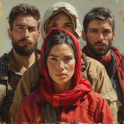 an oil painting of a diverse humanitarian team facing the camera, ultra detailed, dynamic lighting, --v 6.0 --s 750 --style raw