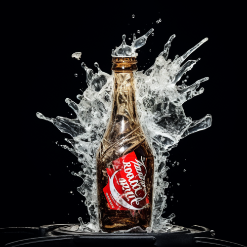 Exploding Coca Cola broken glass bottle. logo. black and white. HD. Woodcarving