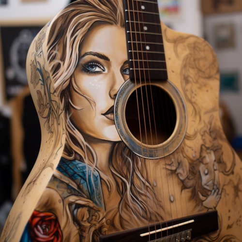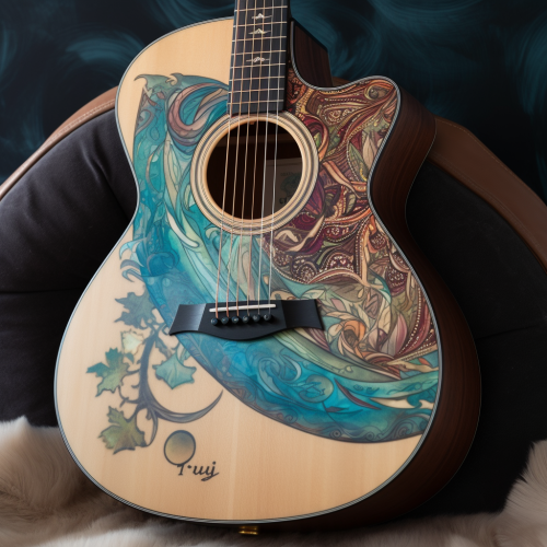 project of beautiful stunning feminine painting on the Taylor 114ce guitar --v 5.0 --s 50