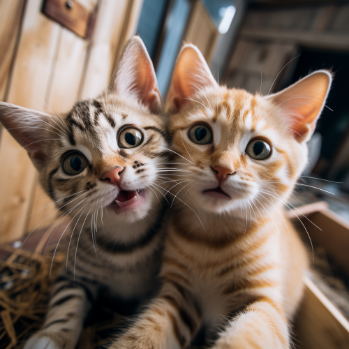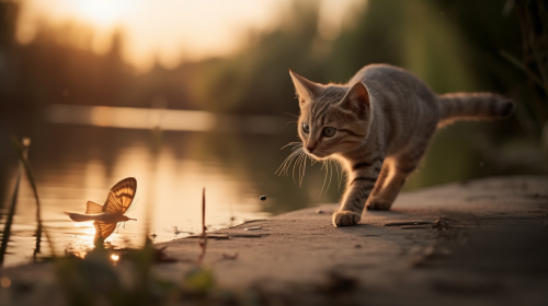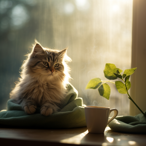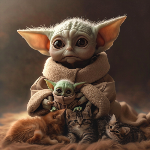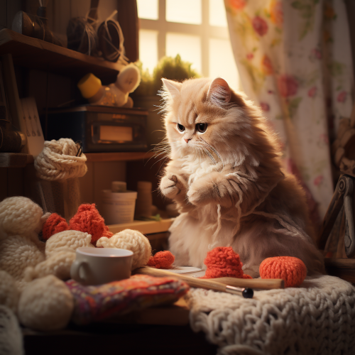 Crocheted kitten on table::1 adorable, lifelike, playful pose, surrounded by yarn balls::0.9 cozy atmosphere, soft focus, tabletop setting::0.8 --v 5.2 --s 150