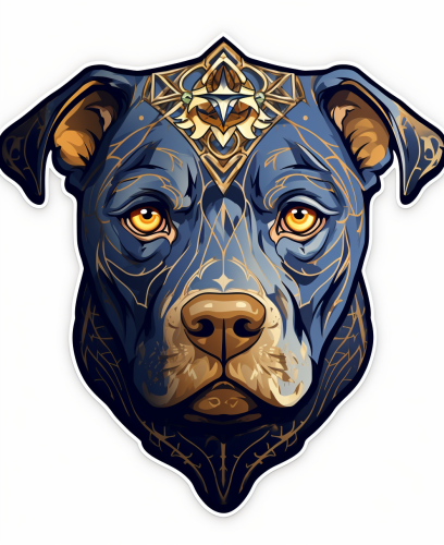 dark blue pitbull colors with golden elements, drawing style, mandala inside the body, white background sticker --ar 9:11