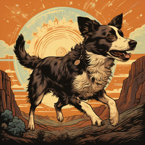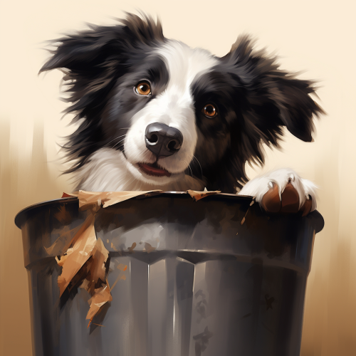 vivi Illustrate of border collie his nose in a garbage can, showcasing his curiosity, 2d, s 250