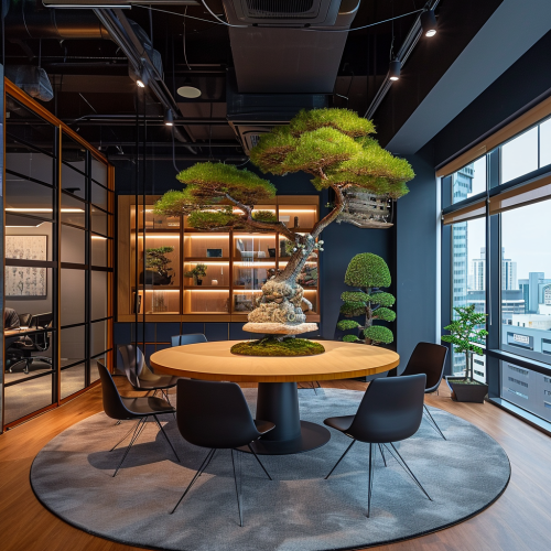 There is also a circular kotatsu and poodle topped with sonabu bonsai placed in the Korea office --v 6.0