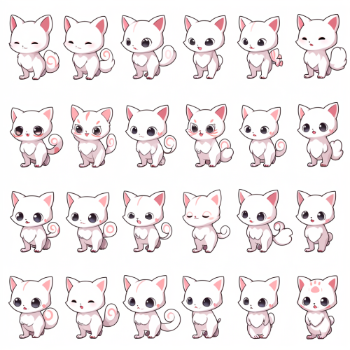 2d game asset sprite sheet for cute cat, white background, large pixel, --niji