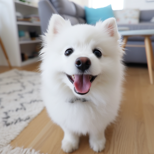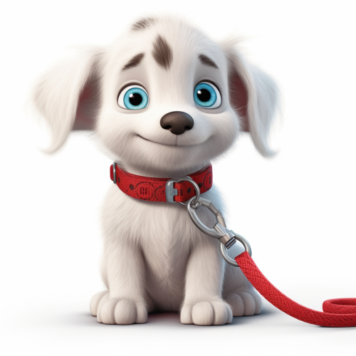 Pixar version of a happy white and gray puppy with blue eyes and a red leash with a bell attached to its collar --s 750 --v 5.0
