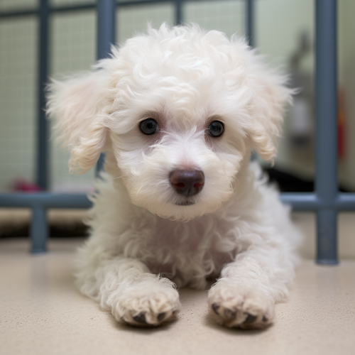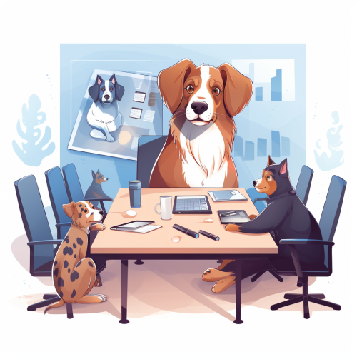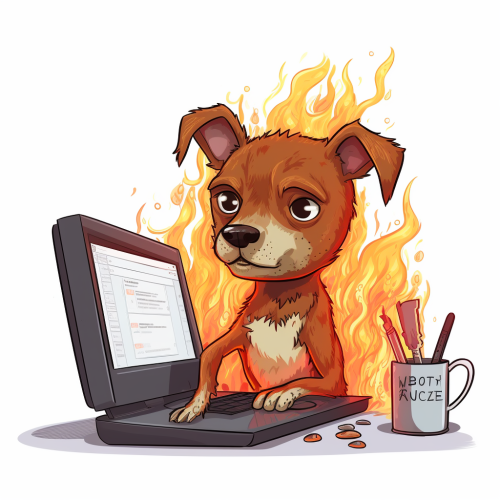 dog software developer - who has burn deadlines in cartoon style on a white backgroud