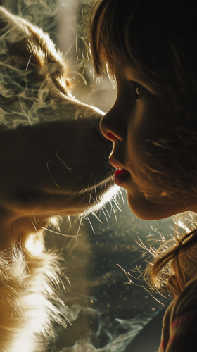 a dog breating his bad breath on a little girl, the girl facial expression shows disgust cause the dogs breath smells arwful, the little girl and the dog are outside, high contrast, ethereal, intricate, incredible, colored, tasty, ARRIFLEX 35 BL Camera, canon K35 Prime lense --style raw --ar 9:16 --v 6.0