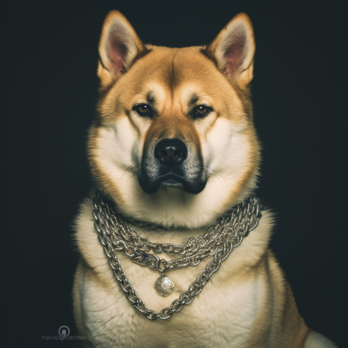 rapper Drakes Dog with Diamond chain looking at me, Akita --v 5.1