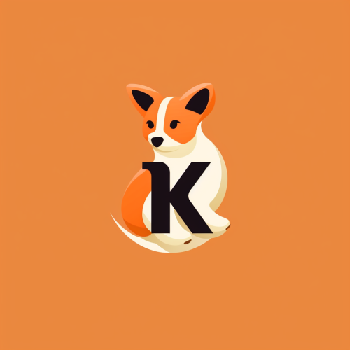 a simple and flat lettermark logo that combines the letter "K" and a walking welsh corgi