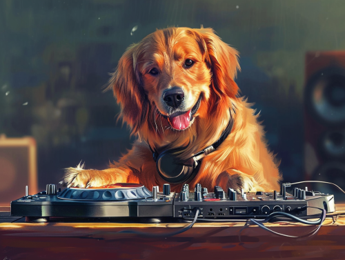 a golden retriever DJ realistic style --ar 4:3 --v 6.0