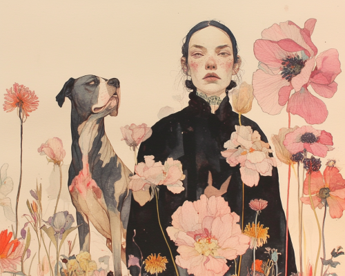 ein Leben ohne Hund ist möglich aber sinnlos , surrealistic portrait of a young woman with a dog --chaos 2 --ar 5:4 --sref 76791926 --personalize dtknhmj --niji 6
