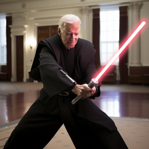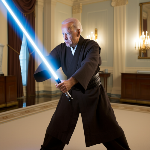 Biden as a Jedi practicing his lightsaber skills in the White House
