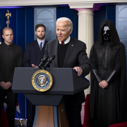Biden as a Sith Lord from Star Wars at a White House press conference