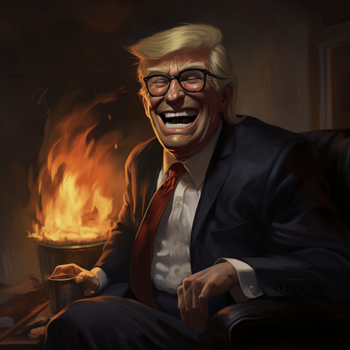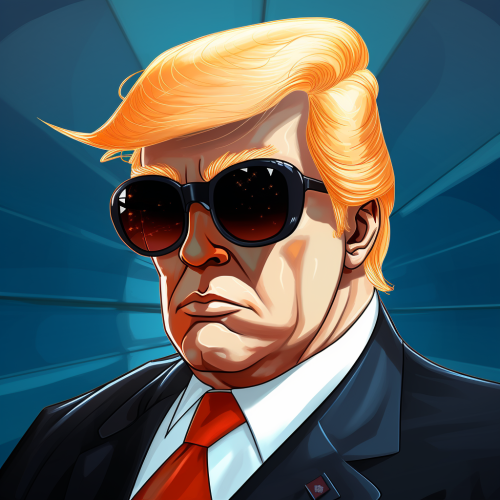 6.1.7.7.1.1 profile picture cartoon art in style of Non fungible tokens of a Bored Vampire Donald Trump with Anti-Glare Glasses and No Backpack in a Detective style center image and full crop