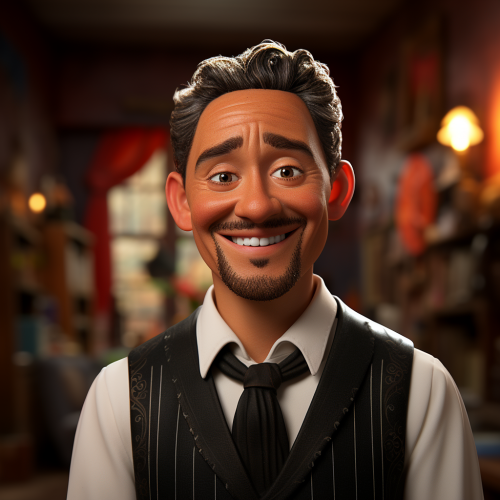 In a dazzling Disney Pixar's cartoon 3D world set in the year 2020, picture a lively Colombian politician with fair skin, resembling the charm of the Madrigal family from 'Encanto'. His exaggerated features--gigantic, round eyes full of enthusiasm, and an infectious cartoonish grin--stand out. The quirky blend of black and white hair, peppered with green, sways with every motion. Dressed distinctively in a bright pink wool sweater with a round neck and a single vibrant flower pinned to his chest, he stands confidently amidst a massive buzzing crowd in Bogotá's plaza. A sea of supporters surrounds him, each mirroring the 'Encanto' style — oversized eyes, chunky hands fervently waving glowy pink banners, and hyper-expressive faces. The whole scene feels like a frame pulled straight from a Pixar animation, with his standout pink attire and the surrounding sea of pink flags drawing eyes and radiating joy and magic in every pixel --s 750 --uplight