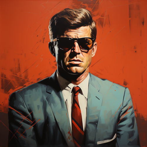 portrait of JFK in front of a blue background, in the style of Andy Warhol --v 5.2 --s 750