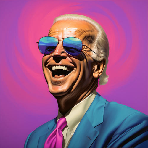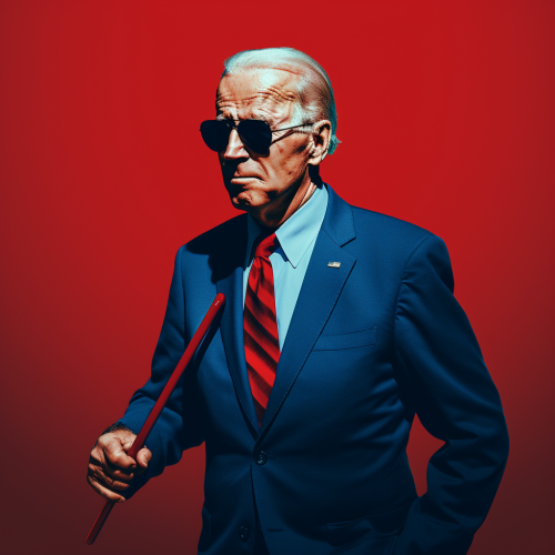 joe biden with sunglasses and a blind walking stick that is colored red white and blue