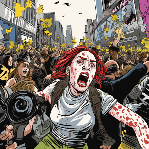 violent blm protests in the streets of nyc, roy lichtenstein style
