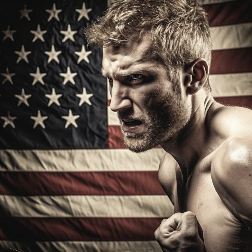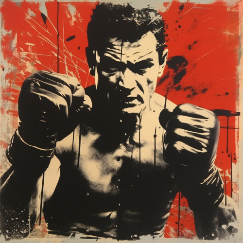 fighter boxer, in the style of without warning album cover, found footage, vandalizing publicity, political propaganda, violent, grainy footage,