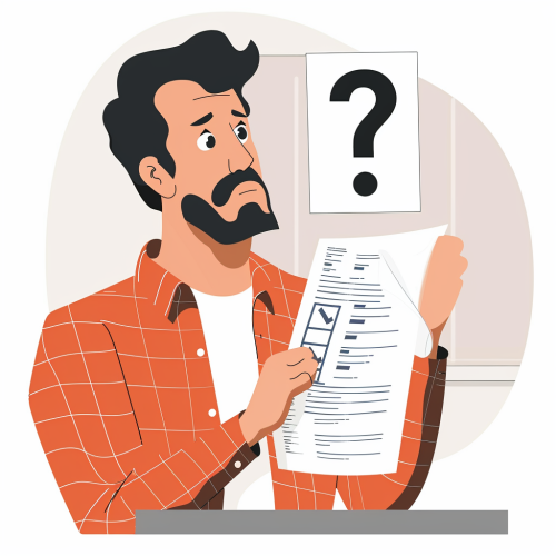flat vector style illustration, a man looking at an election ballot and looking confused, question mark over his head
