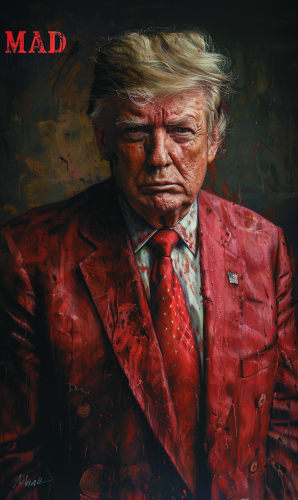 "MAD" magazine cover of a Francis Bacon painting of Donald Trump --ar 3:5 --stylize 750 --v 6.0