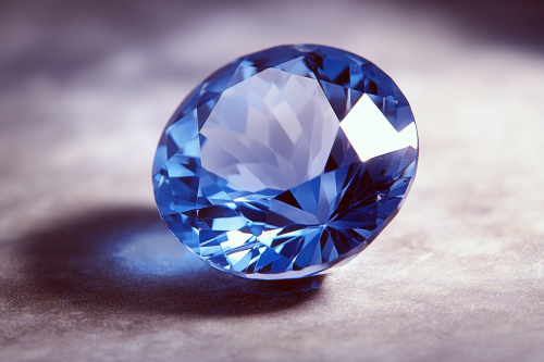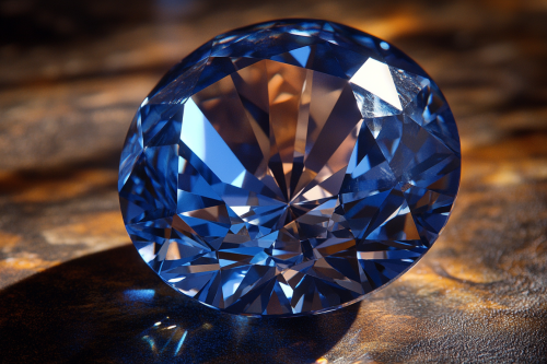 A 35mm film-style photograph of a large, round blue diamond from the Victorian era. The gemstone is shown in high detail, with light reflecting off its smooth, rounded surface and intricate facets. The scene captures the elegance of the early 1900s, with soft lighting emphasizing the brilliance and size of the round gem. --ar 3:2